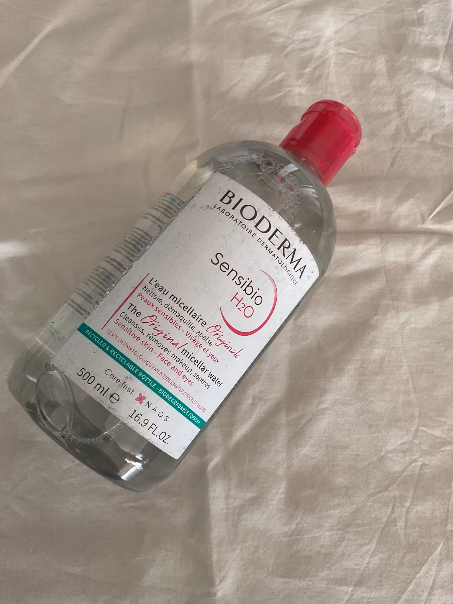 Micellar water. Cleanses, removes makeup and Soothes.